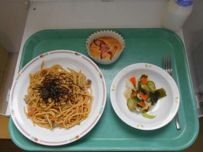 今日は紅玉という酸味の強いりんごを甘く煮て、生地に混ぜて、給食室でマフィンを作りました。秋ならではのデザートです。