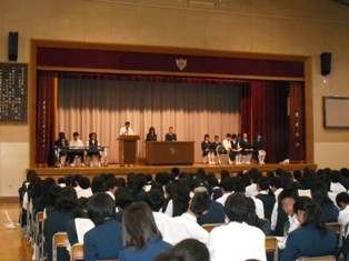 生徒会役員改選が行われ、新たな生徒会の活動が始まりました。生徒総会では、朝のあいさつ運動、プルタブ回収、ボランティア活動、新入生体験活動など、基本方針の討議と承認を行いました。