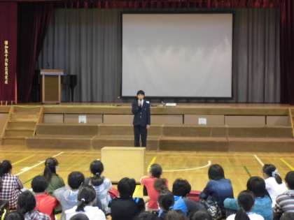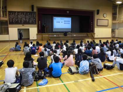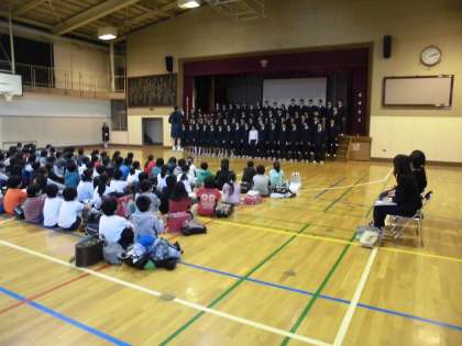 11月2日(木)、小学校6年生対象の体験入学が行われました。体育館に集合し、まずは生徒会からの学校紹介と中学2年生からの合唱披露がありました。