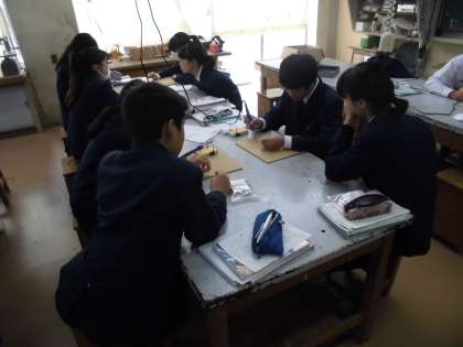 11月10日(金)、2年生の技術の授業です。前半はビデオで電気機器の安全について学び、後半は「はんだごて」を使って、製品の作成にとりかかりました。みんな集中して授業を受けていました。