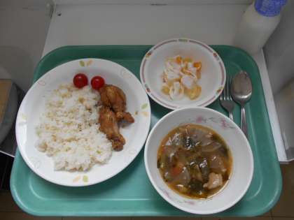 フィリピンの料理、チキンアドボとシニガンです。ALTの先生に教えていただいたレシピで作りました。フィリピンはとても暑いので、食べ物を傷みにくくするために、お酢やレモンをよく使うそうです。