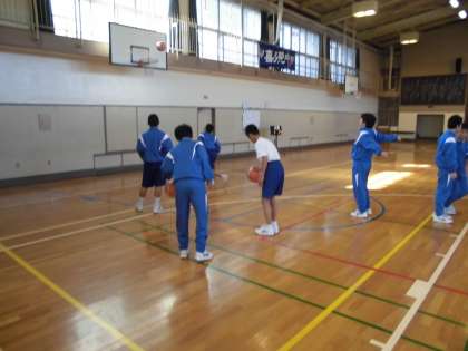 1月29日(月)、1年生の体育の授業です。バスケットボールを行っています。チームで課題を出し合い、それを克服するための練習、そして試合に臨んでいます。果たしてチーム力は上がったでしょうか。