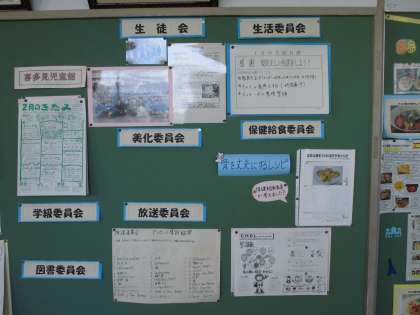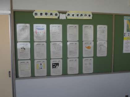生徒会各専門委員会が積極的に活動しています。図書委員会は図書室横の掲示にお薦めの本を紹介しています。各委員会が取り組んだ内容については、職員室前に掲示していますので、保護者・地域の皆さま、ぜひ公開期間にご覧になってください。