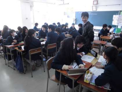 2月5日(月)、2年生の理科です。明日の天気予報を情報を集めて、根拠を示してみんなに伝える活動を行っています。簡単にタブレットを操作し、授業のスタイルが少しずつ変化していることを感じます。