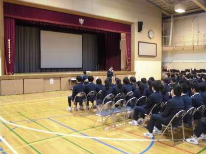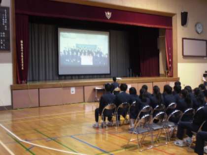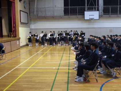 3月7日(水)、「3年生を送る会」が体育館で行われました。後輩が準備をしてくれた感謝の会です。思い出のビデオは、吹奏楽部の演奏をバックに映像が流されました。卒業式まであと10回の登校です。いよいよカウントダウンですね。
