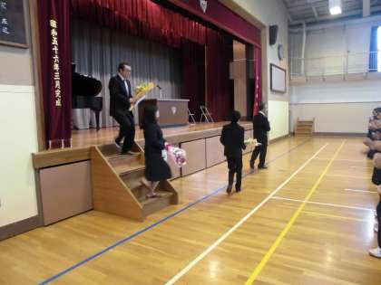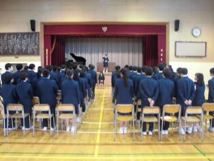 離任式の後、2年生からのサプライズ企画がありました。1学年進級して、成長した姿を先生方に見せられて、とてもいい会になりました。