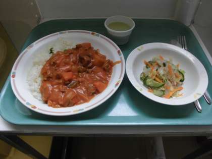 5月2日(水)の給食は、グリンピースライスのハヤシソースです。早朝にボランティア部が手伝ってくれたグリンピースが入っています。ボランティア部の生徒たちは、どんな思いで食べているのでしょうか。調理されるまでの過程を少しでも学ぶことは大事ですね。