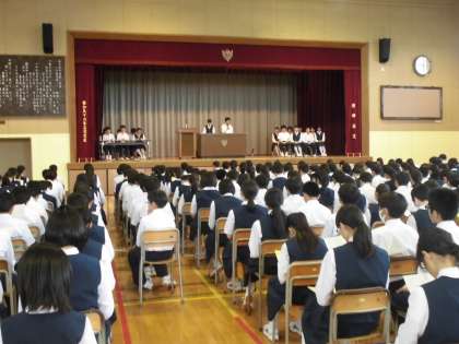 5月2日(水)、生徒総会が行われました。前期委員会で活動方針案が出されました。その採決があり、活動方針として承認されました。全員で作る生徒会。ぜひみんなの活発な意見でもっと良い学校にしてください。