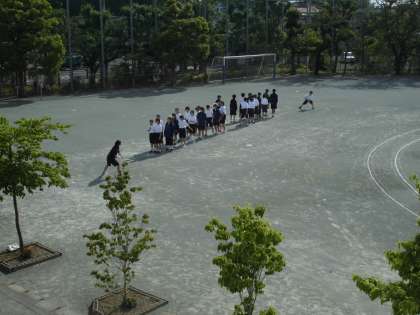5月21日(月)、運動会の朝練習が始まりました。3年生は修学旅行前なので練習はありませんが、1年生は気合いを入れて大繩跳びを行っています。