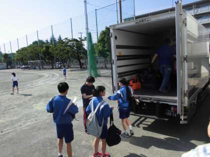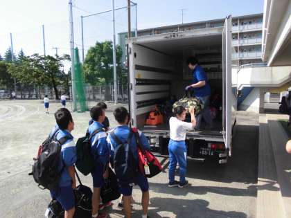 5月22日(火)、明日から3年生は修学旅行で京都・奈良に行きます。今日の朝、荷物を積み込み、明日に備えます。ちょっと天候が心配ですが、良い思い出を築いてきてください。