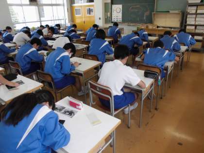 5月22日(火)、3年生の美術の授業です。黙々と作業をしています。