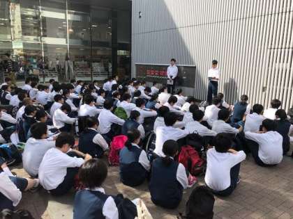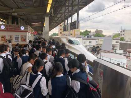 5月23日(水)、3年生は修学旅行です。新横浜駅に集合しました。出発式は実行委員長のあいさつで始まりました。時間通りに新幹線で京都に出発です。