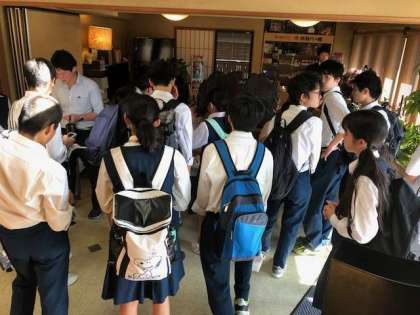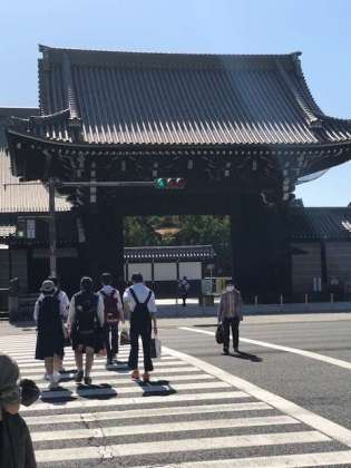 京都の宿舎は西本願寺の前にあります。奈良からの班行動も協力してできたようです。全員到着して、夜に備えます。