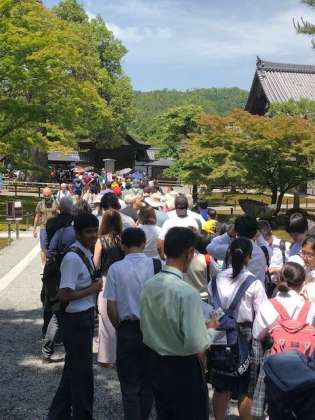タクシー行動で京都の中を動いています。この班は金閣寺に来ましたが、受付から長蛇の列。どこも混んでいます。