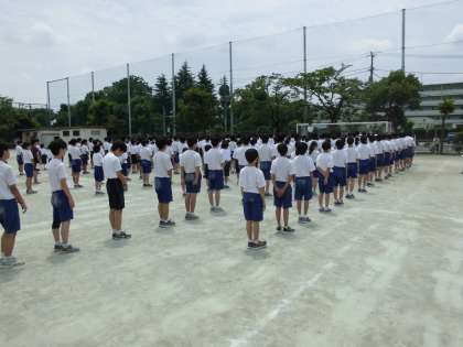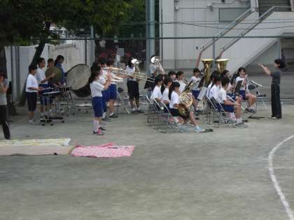 5月29日(火)、運動会の全体練習を行いました。吹奏楽部の演奏で開会式、閉会式の練習を行いました。練習が始まったころに比べ、ずいぶんと行進も上手になりました。明日は運動会予行です。ただ、天気が明日から金曜日まで傘マークがついていて、少し不安ではあります。みんなの元気で雨雲を吹き飛ばしてください!