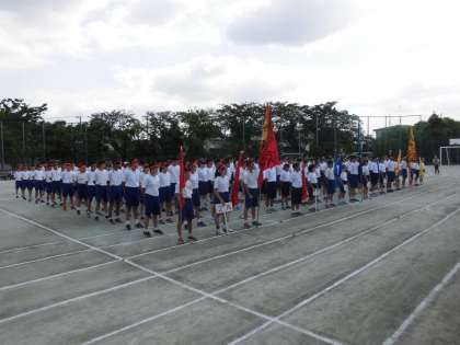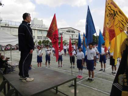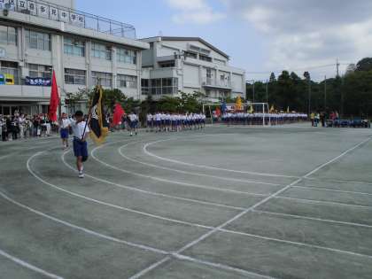 開会式が始まり、立派な行進、選手宣誓がありました。いよいよ運動会の開始です。