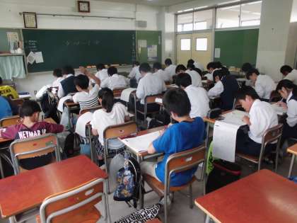 7月13日(金)の放課後、喜多見中学校で漢字検定を行いました。学校運営委員会のご協力も得て、小中合同で検定の運営を行っています。小学生も約50名受検しました。