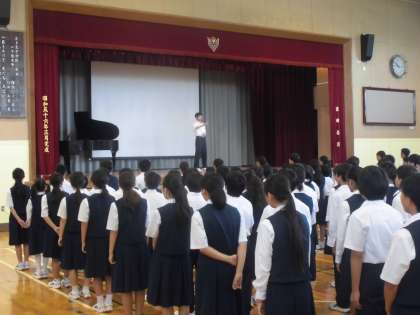 7月20日(金)、1学期の終業式が行われました。校歌斉唱後、校長先生からは「事故に遭わないこと、喜多見中の生徒としての誇り(矜持)をもつこと」について話しがありました。充実した夏休みを過ごして、1歩成長して2学期を迎えましょう。健康にはくれぐれも注意してください。