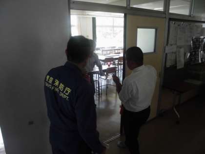 8月31日(金)、本日は前日出勤で2学期の準備を行っています。火事の想定で、教員がどのような動きをするのかを成城消防署の方々に来ていただき確認しました。