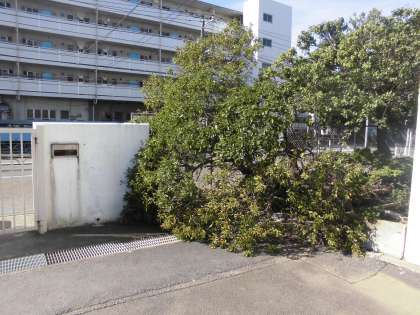 10月1日(月)、台風の強風の影響で、正門横にある梅の木が折れてしまいました。ちょっと残念です…。