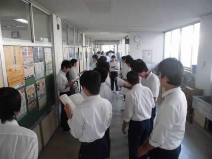 10月9日(火)、3連休が明け、いよいよ来週(20日)の合唱コンクールに向けて、今日から朝練習が始まりました。3年生男子が廊下でハーモニーを響かせています。