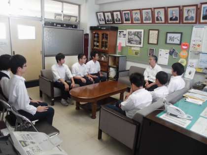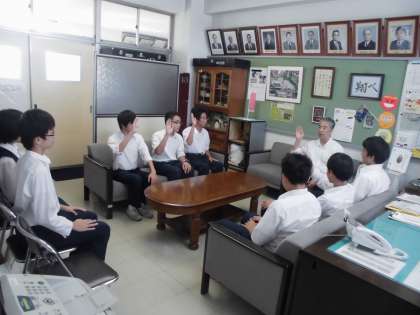 10月10日(水)の昼休み、校長先生と後期委員長の懇談が行われました。生徒会役員と同じく、後期は2年生が中心で喜多見中学校を引っ張っていきます。校長先生から様々にアドバイスをいただき、後期委員会の活動がスタートします。