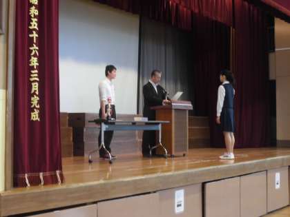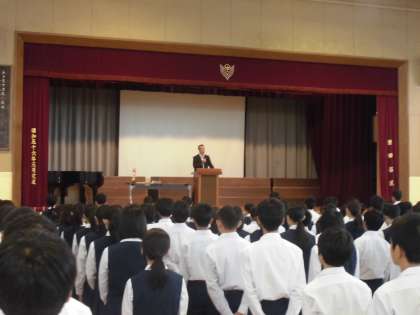 10月15日(月)、本日から学校公開期間です。ぜひ生徒の姿をご覧いただきたいと思います。今日は全校朝礼です。校長先生から「委員会や係に懸命に取り組むことは立派なこと」、「合唱コンクールに向けて頑張ってもらいたい」との話がありました。区陸上競技大会や新聞コンクール入賞の表彰がありました。