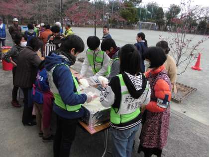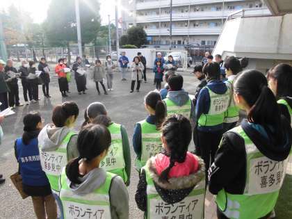 11月24日(土)、本校で避難所運営訓練が行われ、生徒ボランティア12名が参加しました。誘導や炊き出しのお手伝いを積極的に行い、地域の方々からたくさんの感謝のことばをかけていただきました。