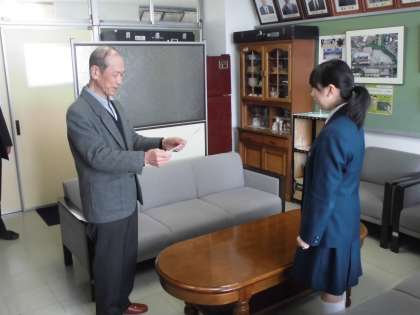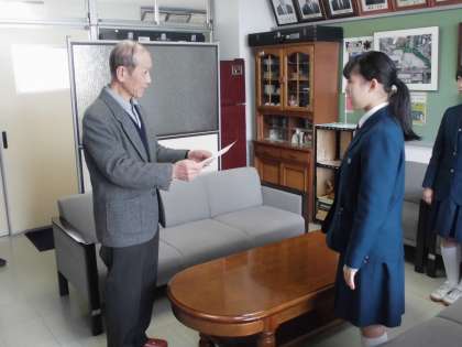 12月7日(金)、古着古布回収で4回以上、ボランティアに参加した生徒に表彰状が送られました。当日いただいた生徒を含め、3年生は4名が地域のリサイクル推進委員会から表彰状をいただきました。