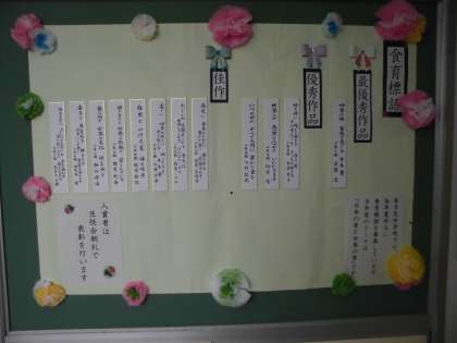 食育標語、生活習慣アンケート(2階職員室前廊下)