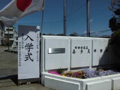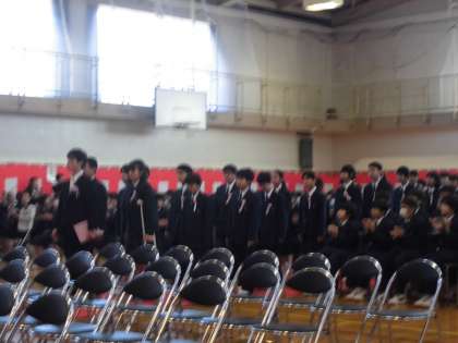 太陽がまぶしい、とても良いお天気の中95名の新入生を迎えることができました。