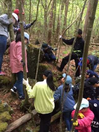 船津胎内神社の中にある洞穴に入るなど、ネイチャーガイドの方の案内で世界的に貴重な溶岩樹型洞穴群を散策しながら、自然の恵みを体験しました。クラフト体験もしました。