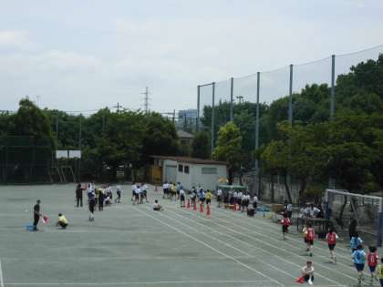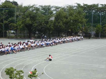 5月29日(水)朝に雨が降っていましたが、生徒、先生が協力して、校庭の水たまりをスポンジで吸い取り、1時間遅れで予行練習を始めることができました。