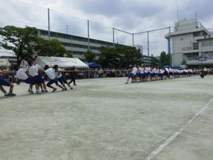 大縄跳び、全員リレー、の他に今年度から「色別対抗綱引き」の競技が行われ、
