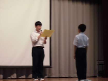 7月1日(月)生徒会朝礼では、各委員会工夫した発表・報告がありました。