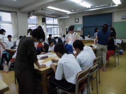 9月3日保健給食委員会の活動で、骨密度測定を行いました。日本女子大学家政学部の研究室の方、教授の先生他15〜16名の方が喜多見中に来てくださいました。機械をを持ってきていただき、骨密度や体組織の測定もしました。中学生のこの時期にしっかりとした食生活を送り、運動をすることで骨や内臓を作っていきます。自分の身体を知るいい機会になったと思います。