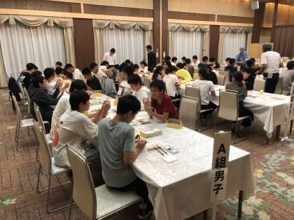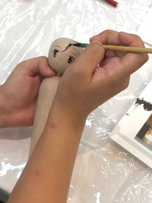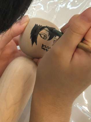夕食後は、入浴と体験学習です。こけしの絵付けに挑戦です。