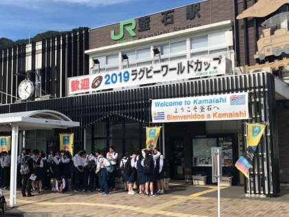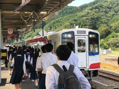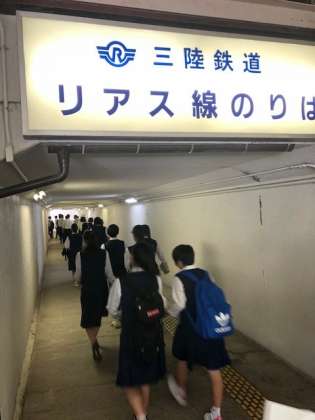 釜石駅から震災学習列車に乗って三陸鉄道のガイドさんからお話を伺って学習します。