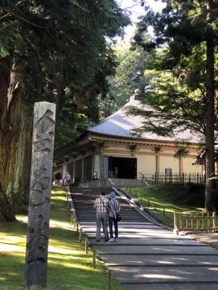 気持ちのよい青空の下、国宝第1号建造物の中尊寺金色堂を見学しています。