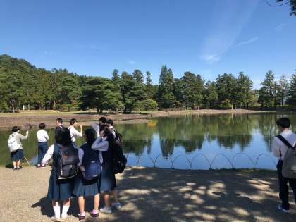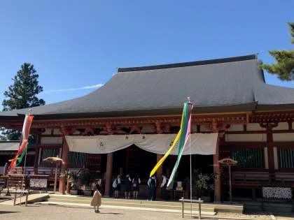 生徒たちは参拝して、芸術写真を狙って撮っています。