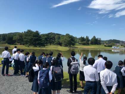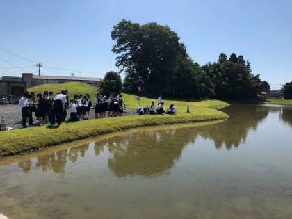平安時代に極楽西方浄土を再現した浄土庭園の最高傑作と言われる無量光院の跡を、のんびりと眺めています。