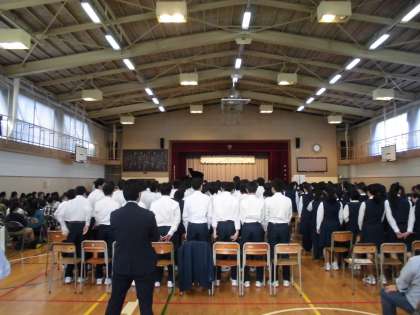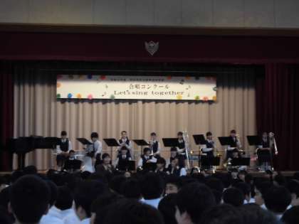 10月26日(土)昨日までの大雨とは変わり、晴天の中で合唱コンクールが行われました。午前中の合唱コンクールでは、前日までの練習の成果を各クラス、各学年ともに十分に発揮することができました。午後には吹奏楽部が工夫した演出でいろいろなジャンルの曲を演奏し、会場が一体となって音楽を楽しむことができました。