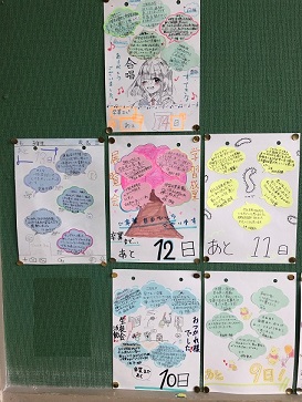 生徒会が音頭を取って、1、2年生がお世話になった3年生に向けて、カウントダウンカレンダーの形式でメッセージを書きました。心のこもったメッセージを3年の各教室に掲示しました。あまり時間はないですが、登校日に見てください。