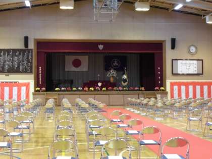 卒業式に向けて、花も飾られ、体育館の会場準備ができました。3年生の皆さん!明日はこの会場で卒業式が行われます。授与の仕方など明日の朝、学活で説明します。不安もあるかもしれないですが、3年間の集大成が卒業式です。皆さんならばできると、先生方は信じています。緊急メールでも配信しましたが、連絡事項があります。1体育館履きを忘れずに持ってきてください。2持ち帰る袋を持ってきてください。3今までの学校生活のルールを最後まで守りましょう。4肌着等で体温調節できるようにしてください。5朝、検温し、マスクを着用してきてください。発熱等風邪症状があるときは無理して登校しないようにしましょう。