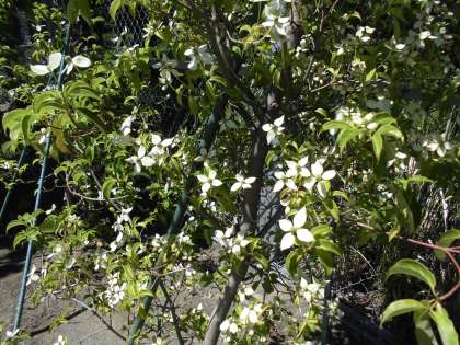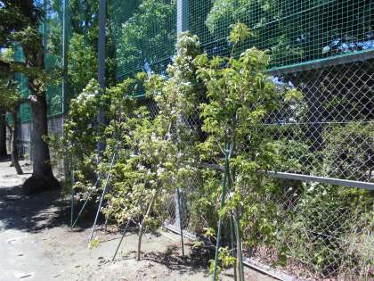 昨年度、生徒会の活動で校庭に植えた「山ぼうし」の木に白い花が咲きました。しっかりと根を生やし、幹も太くなっています。校庭に出る時があったら是非見てください。