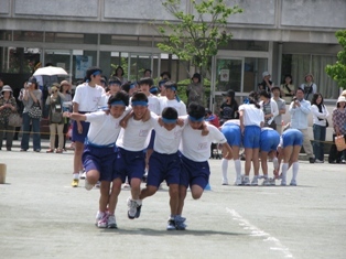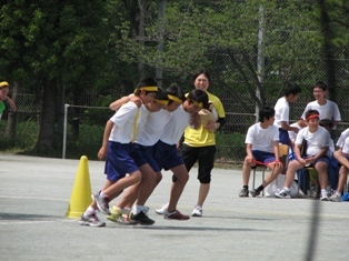 1学年種目は、4人5脚。息を合わせて、イチ、ニ。イチ、ニ。