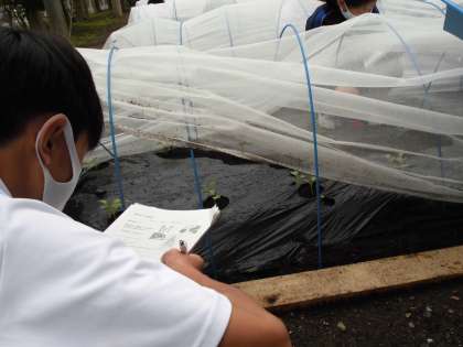 9月14日(月)種をまいてから毎日副班長が観察して、学年のフロアーに掲示してある大根カレンダーで報告していましたが、全員で観察し、絵をかきました。それぞれが芽が出た感想も含め、絵手紙形式でまとめています。「芽が出てうれしい」という気持ちが表現されていました。