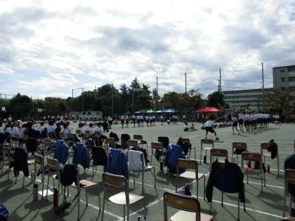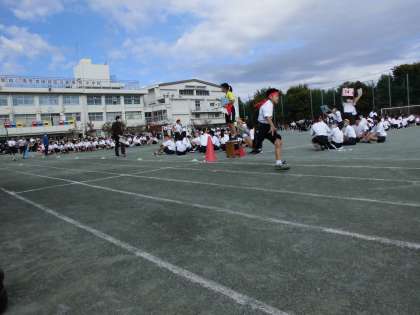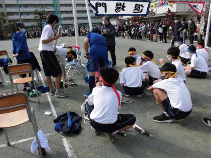 1年全員リレー 2年大縄跳び 今年の用具係は用具の消毒も行いました。