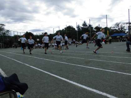 3年全員リレー 1年大縄跳び 2年全員リレー 全力を尽くし頑張りました。放送係の実況も競技を盛り上げていました。