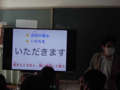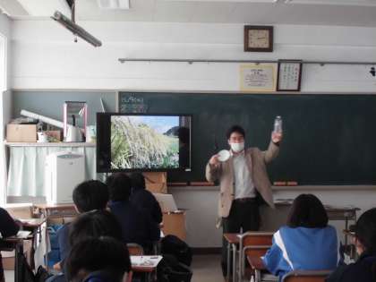 12月10日(木)(社)和食文化国民会議の幹事でもある食器メーカーの方を講師に迎え、)「うつわから和食と文化を考える」の授業を行いました。「いただきます」は自然の恵み、いのちをいただきます。余すことなく、敬い感謝して使うという気持ちを表しているというお話や食を通じて人や物を大切にする思いである。というお話もありました。3年生は、日本の文化と食や器の関係を深く学ぶことができました。